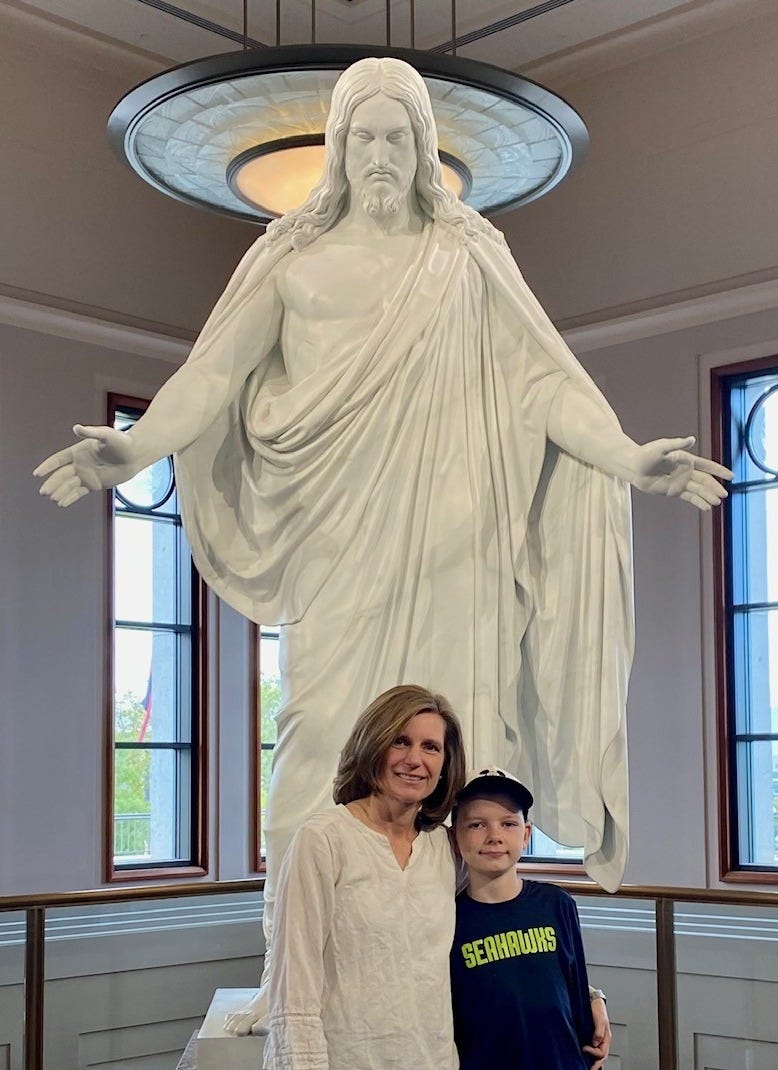 Me and my boy recently at the feet of a replica of a statue of Jesus known as The Christus, carved by Bertel Thorvaldsen.